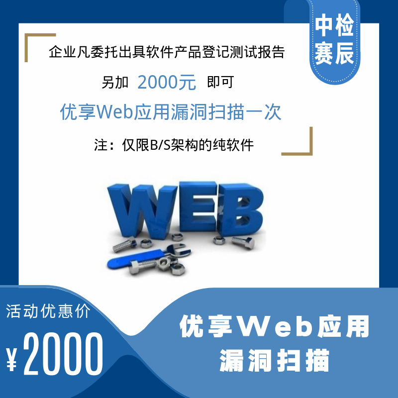 為回饋新老客戶,即日起,企業凡通過我公司委托出具軟件產品登記測試報告時,+2000元即可享受該軟件Web應用漏洞掃描,及出具問題報告(市場參考價為8000元起)。